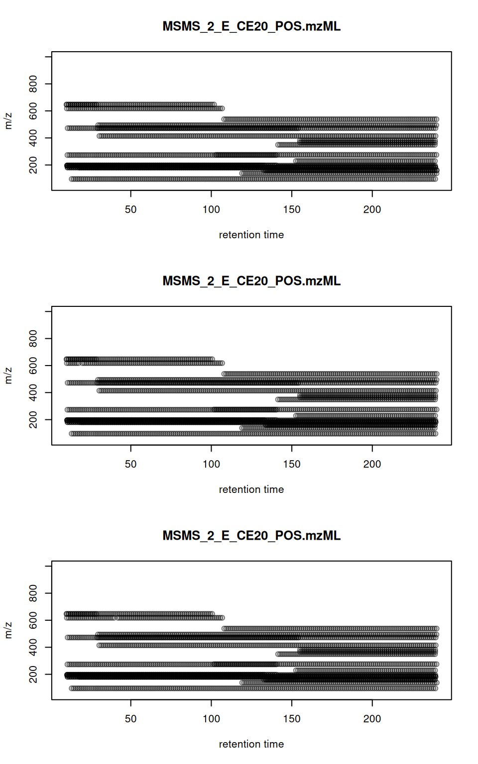 Note that different equipment will generate various file extensions, so a conversion step might be needed beforehand, though it does not apply to this dataset. The Spectra package supports a variety of ways to store and retrieve MS data, including mzML, mzXML, CDF files, simple flat files, or database systems. If necessary, several tools, such as ProteoWizard’s MSConvert, can be used to convert files to the .mzML format (Chambers et al. 2012).