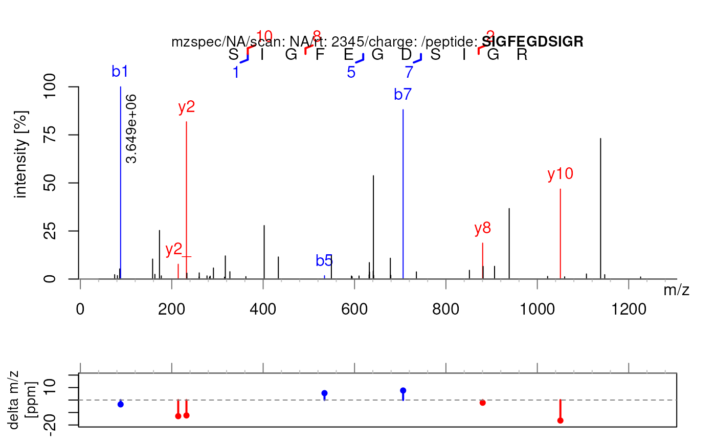 plotSpectraPTM(sp, deltaMz = FALSE)