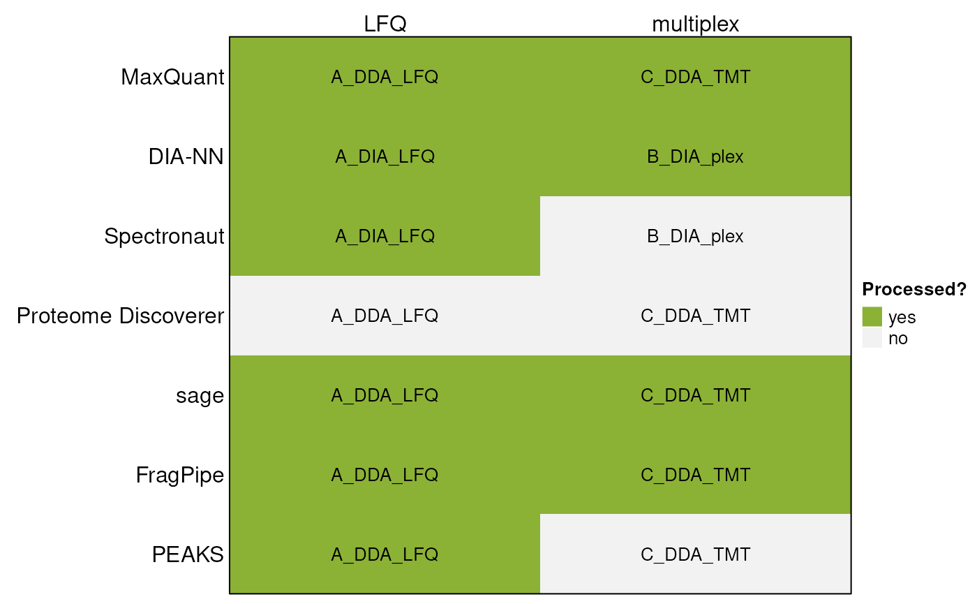 Example outputs for LFQ quantification using DIA-NN, Spectronaut and PEAKS were sourced from the ProteoBench website. IDs of these outputs on the ProteoBench website are as follows: